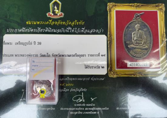 หลวงพ่อรวย วัดตะโก จ.อยุธยา เหรียญรูปไข่ ปี 2539 เนื้อเงิน ติดรางวัลที่ 2 งานประกวด