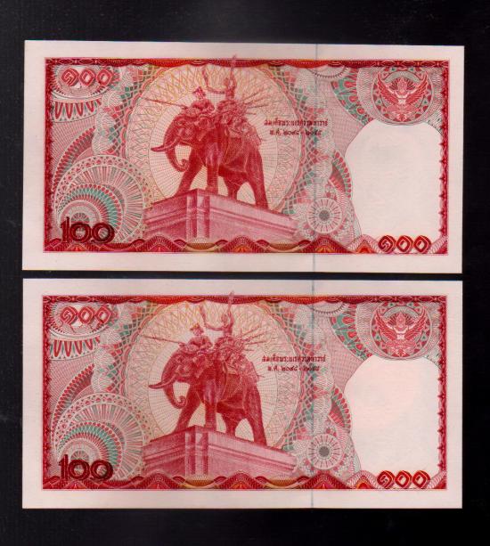 ## ธนบัตร 100 บาท ## ช้างแดง ## หกหลัก ## 9 หน้า ## เรียงเลข 2 ฉบับ ## UNC |