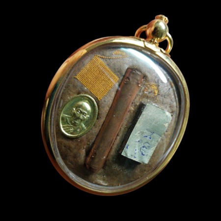 ล็อกเก็ตโปร่งฟ้ามหาโภคทรัพย์ ( ลายรดน้ำทองรุ่นแรก ) หมายเลข ๑๙๙ เลขสุดท้ายของรุ่น หลวงปู่คำบุ วัดกุดชุมพู จ.อุบลราชธานี มาพร้อมกล่องเดิม