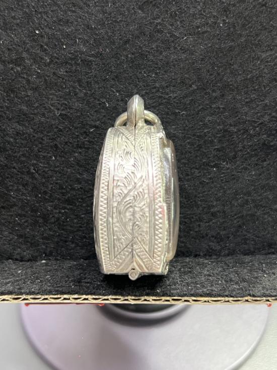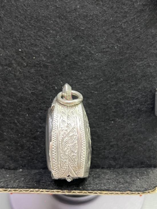 ตลับเงิน มือสอง ใส่พระรูปหล่อหลวงพ่อเงิน หรือใกล้เคียง สภาพสมบูรณ์ ใครหาอยู่ไม่ผิดหวังครับ ขนาดหน้าจอ กว้าง 19mm สูง 26mm หนา 12mm หนัก 15.68 กรัม |
