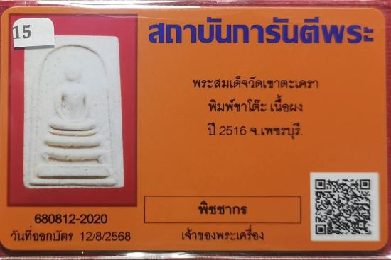 พระสมเด็จ ลพ.วัดเขาตะเครา พิมพ์ขาโต๊ะ เนื้อผง ปี2516 จ.เพชรบุรี พร้อมบัตรรับรอง