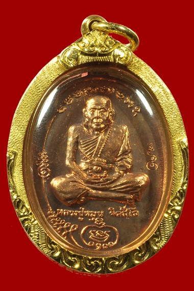 เหรียญหลวงปู่หมุน รุ่นแรก พิมพ์เต็มองค์ เนื้อทองแดง ( สภาพสวย ) เลี่ยมทองพร้อมบัตร