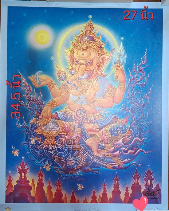 กราบขออนุญาตท่านอ.เฉลิมชัย โฆษิตพิพัฒน์ นำเสนอภาพพิมพ์ พระพิฆเนศ คู่บารมี ภาพขนาดใหญ่ ขนาดภาพ 27*34.5 นิ้ว (68.5*87.5 ซม.) ลายเซ็นต์ ฉ เต็มยศ มหมายเลขกำกับภาพ ๑๐๙๕ /๙๙๙๙ ภาพสี มีจำนวนเพียง 2,330 ภาพเท่านั้น