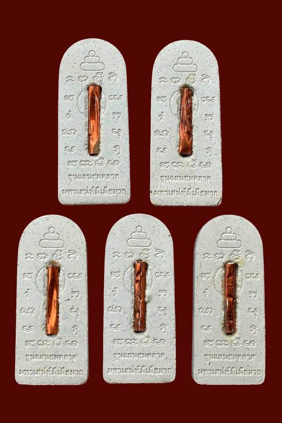 ชุด 5 องค์...พระขุนแผนชมตลาด (หนุ่มรุมรัก สาวลุ่มหลง) เนื้อผงขาวหลังฝังตะกรุดทองแดง ปี 2558 หลวงปู่เฉลิม วัดบุญนาคประชาสรรค์ จ.สมุทรสงคราม พร้อมซองเดิมจากวัด