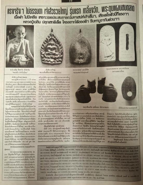 หลวงปู่เคยออกขุนแผนพลายอาคม รุ่นแรก ให้ลูกศิษย์ได้ไว้บูชา เกิดประสบการณ์มหาเสน่ห์ มหาเมตตาอย่างมากมาย จนไม่พอที่จะให้บูชา เพราะประสบพบเจอกับสิ่งดีๆในเรื่องความรักกันทุกคนที่ได้ใช้ บางรายมีภรรยาอยู่แล้วพอได้ใช้ ภรรยาต้องสั่งห้ามแขวน เพราะมีแต่สาวๆมากหน้าหลายตาเข้ามาพัวพัน เรื่องราคาไม่ต้องถามหา จากพระราคาแค่หลักร้อย พอมีประสบการณ์ดีๆมากมาย ก็พุ่งไปตามประสบการณ์ จนตอนนี้เล่นหากันหลายพันบาท มาคราวนี้หลวงปู่ได้สร้างพระขุนแผนชมตลาด ที่ใครพลาดแล้วจะเสียใจ เพราะหลวงปู่ได้รวบรวมมวลสารเด็ดๆเอาไว้เพียบ เพื่อนำมาผสมไว้ในพระขุนแผนรุ่นนี้โดยจำเพาะ เจาะจงให้มีคู่ เจาะจงให้มีแฟน เจาะจงให้มีคนรู้ใจ ใครที่เป็นโสดทั้งหญิงชายต้องหามาบูชาเป็นอย่างยิ่ง ใครที่ชอบสุดยอของดีด้านมหาเสน่ห์เจ้าชู้แบบแรงๆต้องหามาไว้บูชา ไม่ว่าท่านจะอกหักรักคุดมาแต่ไหน ไม่ว่าท่านจะรูปไม่หล่อหน้าไม่สวยถึงเพียงไร หากมีพระขุนแผนชมตลาดนี้ไว้บูชาแล้วล่ะก็ ไม่นานเกินรอ มหาเสน่ห์เกิดหนุ่มๆสาวๆวิ่งตามจีบ มหาเมตตามากใครเห็นก็รักลุ่มหลงตกลงปลงใจในไม่ช้า มหานิยมเลิศเกิดแต่นิยมชมชอบมอบกายใจให้แก่เรา เอาเป็นว่าใครอยากได้ดีในเรื่องความรัก อยากมีคู่พบสุขสมหวังดังใจกับเขาเสียที แนะนำเลยนะ...พระขุนแผนชมตลาดยอดดีสุดร้อนแรงแห่งความรัก ที่จะปัดเป่าทุกอุปสรรคที่ท่านพบเจอมา ให้สมหวังในเรื่องความรักอย่างไม่ยากเย็น สร้างไว้ 2 เนื้อคือ. เนื้อผงขาว (หนุ่มสาวหลงรัก) และ เนื้อผงดำ (สาวตามหนุ่มลุ่มหลง) สร้างไว้เนื้อล่ะ 500 องค์เท่านั้น บูชาเพียงองค์ล่ะ 200 บาท