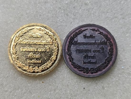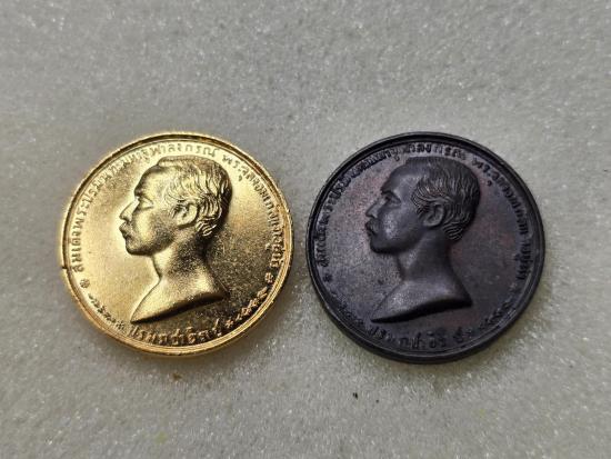 เคาะเดียวแดง เหรียญรัชกาลที่ 5 ที่ระลึก100ปีศรีราชา ปี2537(ลพ.เริ่มปลุกเสก) 2 เหรียญ