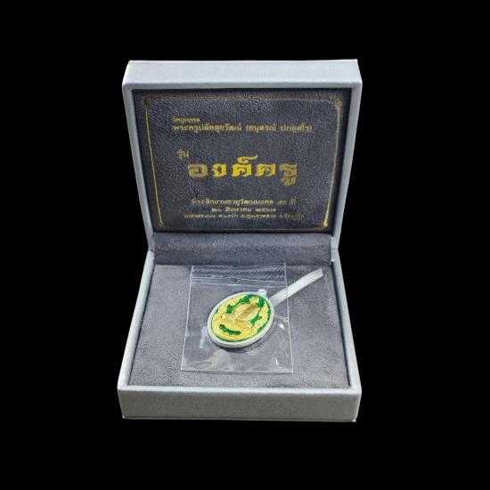 เหรียญองค์ครู หลังหนุมานองค์ครู พระอาจารย์ต้อม ปภัสสโร วัดท่าสะแบง จ.ร้อยเอ็ด ปี2567 (2.2 เนื้อเงินลงยาหน้าทองคำ กนกทองคำ ฐานทองคำ) ตอกโค้ต หมายเลข 469 ** ราคาจองมา 13000 **