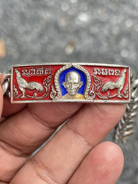 หลวงพ่อรวย วัดตะโก จ.อยุธยา เลสข้อมือ รุ่นชนะจน ปี2556 เนื้อเงินลงยา ขนาด4 บาท นิยม