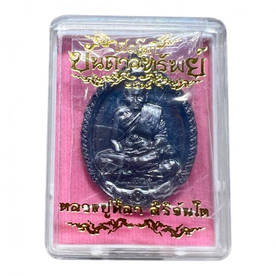 เหรียญเปิดโลกบันดาลทรัพย์ หลวงปู่มหาศิลา สิริจันโท เนื้อทองแดงรมดำ เลข1292 สร้าง5000เหรียญ |