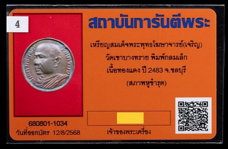 @@@ เหรียญกลม รุ่นแรก สมเด็จพระพุทธโฆษาจารย์ วัดเขาบางทราย ปี 2483 พร้อมบัตรรับรอง @@@