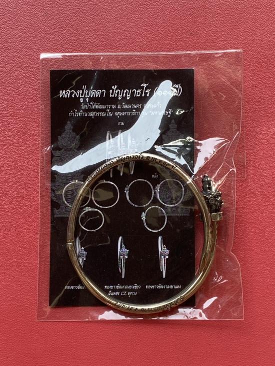 เคาะเดียวแดง หลวงปู่บุดดา กำไลท้าวเวส เนื้อ ทองขาวขัดเงารมดำ |