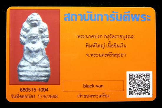 พระนาคปรก พิมพ์ใหญ่ เนื้อชินเงิน กรุวัดราชบูรณะ จ.อยุธยา พร้อมบัตรรับรอง G-pra ครับ