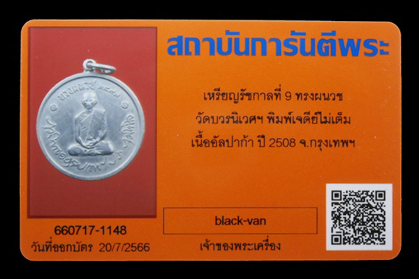 เหรียญในหลวง ทรงผนวช วัดบวรนิเวศน์ เนื้ออาปาก้า ปี 2508 พร้อมบัตรรับรอง G-pra ครับ
