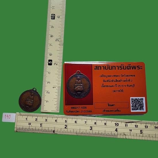 ชื่อพระเครื่อง หลวงพ่อคง วัดวังสรรพรส พ.ศ.2518 สภาพใช้ พร้อมบัตรการันตีรับรอง