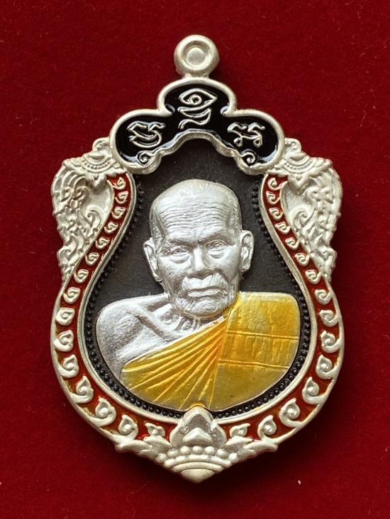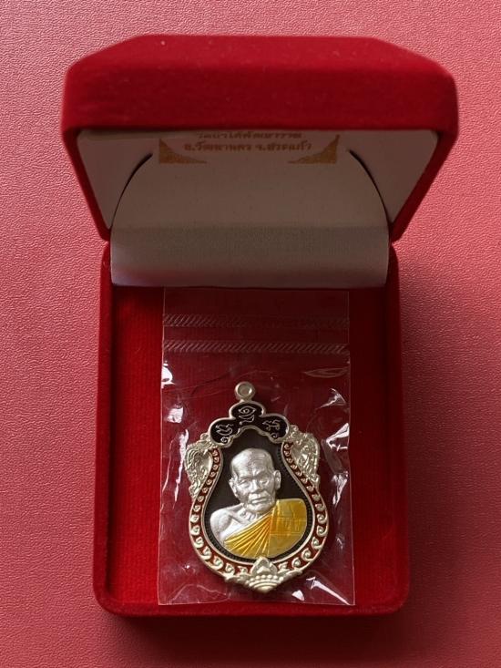 เคาะเดียวแดง หลวงปู่บุดดา รุ่น บูชาครู เนื้อ นวะหน้ากากเงินขอบเงินลงยา รายการที่4 (กล่องแทน)