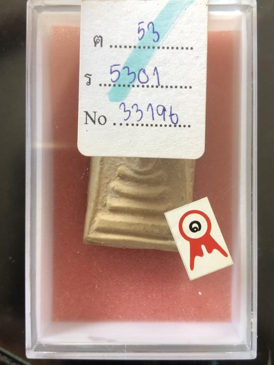 พระสมเด็จพิมพ์ฐานสามชั้นยันต์ข้าง (แซยิด) ฝังตะกรุด ปี 2485-95 พระครูสุพจน์ วัดสุทัศน์ กทม.รางวัลที่ 1 งานไฟฟ้าฝ่ายผลิต สำหรับนักสะสมพระสวย มุมซ้ายล่างหลังบิ่นนิด