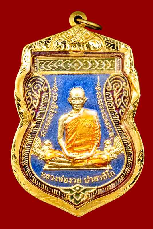 เหรียญหลวงพ่อรวย วัดตะโก รุ่นเลื่อนสมณศักดิ์ เนื้อกะไหล่ทองลงยา ปี 2559 จ.พระนครศรีอยุธยา (หมายเลข 6908) เลี่ยมกรอบทองคำแท้ |