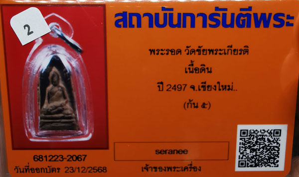 พระรอด วัดชัยพระเกียรติ เนื้อดิน(ก้นเลข๕) ปี2497 จ.เชียงใหม่ + บัตรG-pra สภาพสวยเดิมค่ะ
