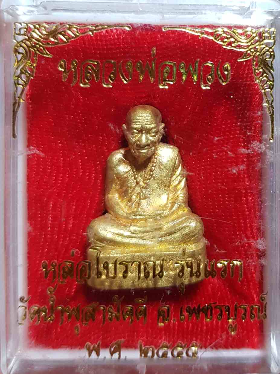"วัดใจ" หลวงปู่พวง ฐานวโร รูปหล่อโบราณ รุ่นแรก เนื้อทองฝาบาตร วัดน้ำพุสามัคคี อ.ชนแดน จ.เพชรบูรณ์ สภาพสวยเดิมไม่ผ่านการใช้ พร้อมกล่องเดิม หมายเลข ๗๕๔ |