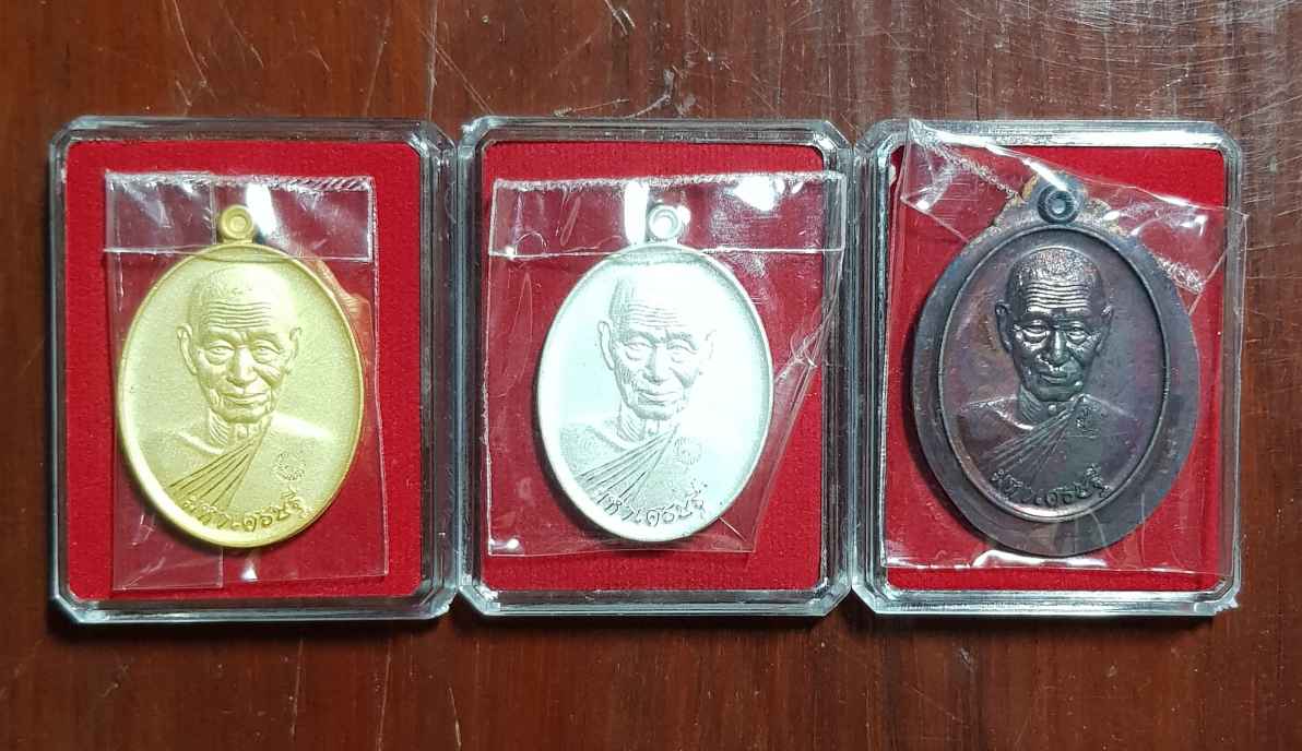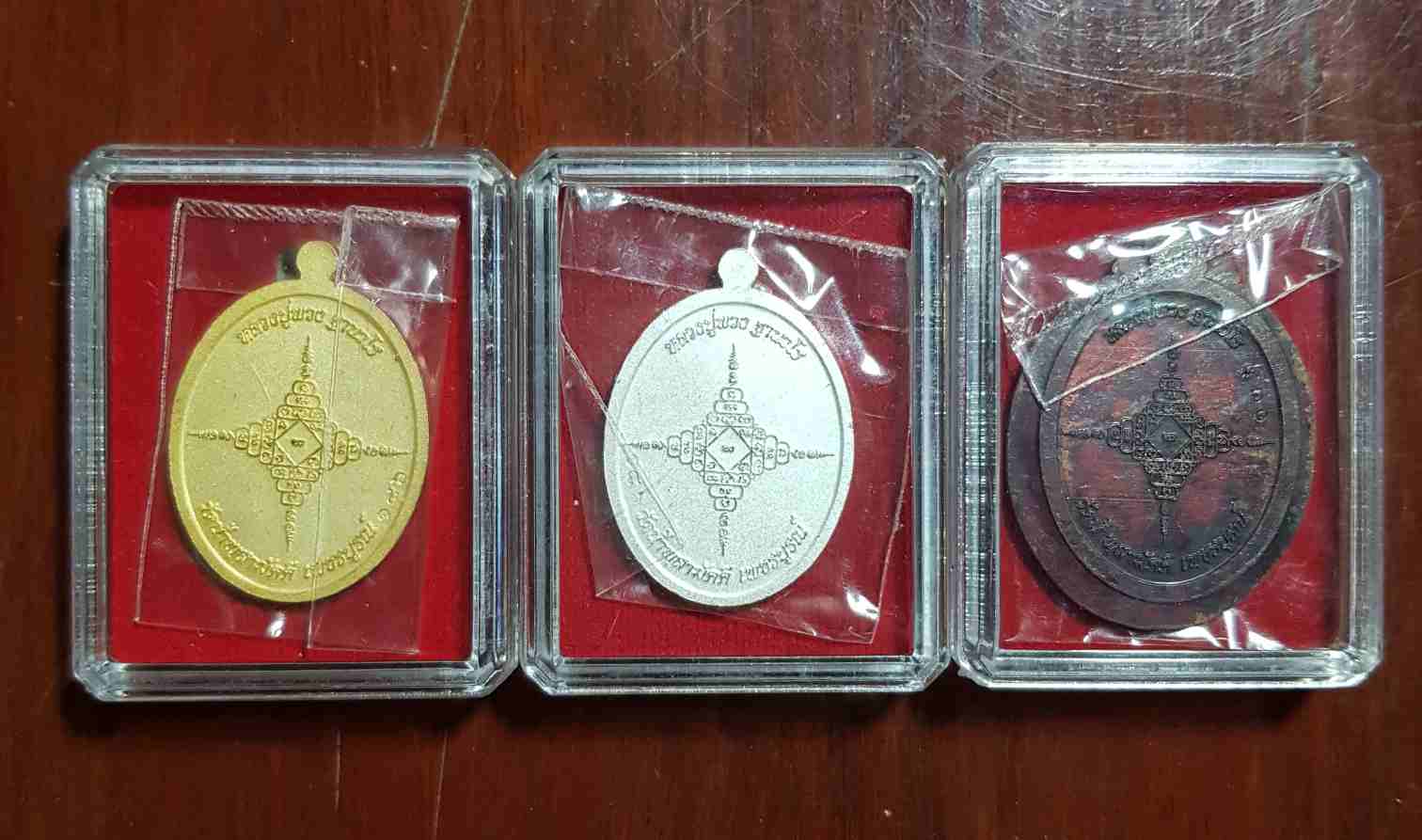 "วัดใจ" เหรียญมหาเศรษฐี ชุดกรรมการเล็ก(3เหรียญ) หมายเลขเดียวกัน 186 หลวงปู่พวง วัดน้ำพุสามัคคี จ.เพชรบูรณ์ สภาพสวยซีลเดิมพร้อมกล่องเดิมครับ