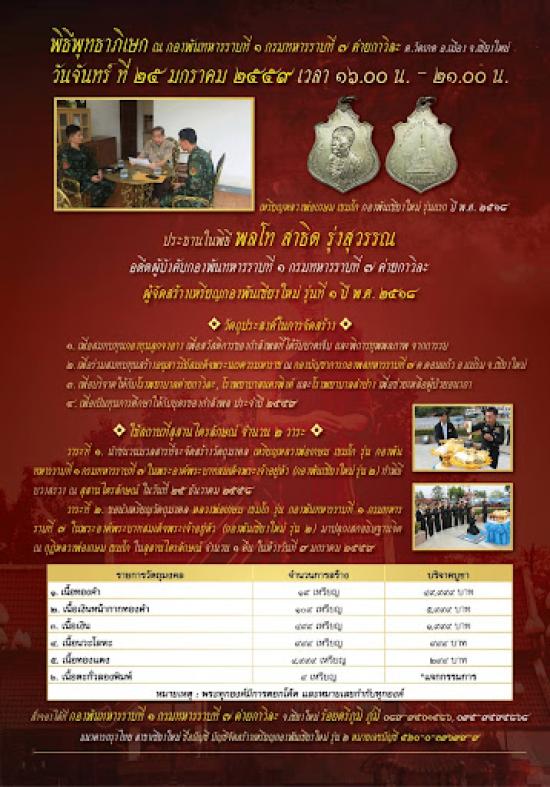 < วัดใจ > พระเหรียญกองพันเชียงใหม่สอง หลวงพ่อเกษม เขมโก สุสานไตรลักษณ์ลำปางเนื้อทองแดงหมายเลข 2298 ปี 2559 สภาพสวยๆพร้อมกล่องเดิมๆครับเท่าไรเท่านั้น |