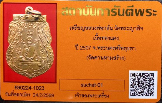 เหรียญหลวงพ่อกลั่น วัดพระญาติฯ เนื้อทองแดง ปี 2507 จ.พระนครศีอยุธยา วัดคานหามสร้าง