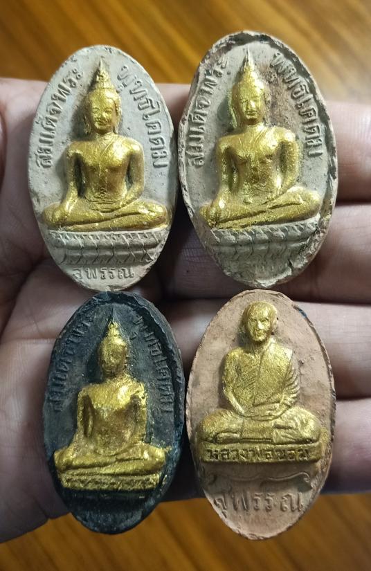 230/ พระสมเด็จพระพุทธโคดม+ พระรูปเหมือนหลวงพ่อขอม วัดไผ่โรงวัว ปี 05 ( 1ชุด 4 องค์ )