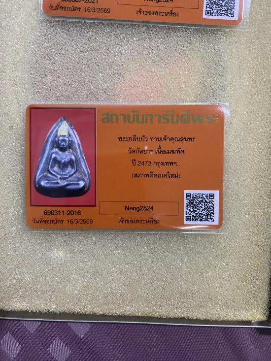 พระกลีบบัว ท่านเจ้าคุณสุนทร วัดกัลยาฯ เนื้อเมฆพัด ปี 2473 กรุงเทพฯ. + บัตร g pra ครับ