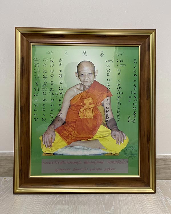 รูปภาพหลวงปู่หงษ์ ฉากเขียว ใส่กรอบพร้อมบูชา สวยมาก |