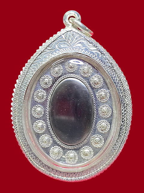 ***เหรียญคันฉ่องเนื้อเงินปัดเงา (หมายเลข 82) รุ่น สำเร็จปราถนา หลวงพ่อสาคร วัดคลองหอทอง จ.ปราจีนบุรี สร้างเพียง 100 เหรียญ พร้อมเลี่ยมกรอบเงินลงยาอย่างดี***