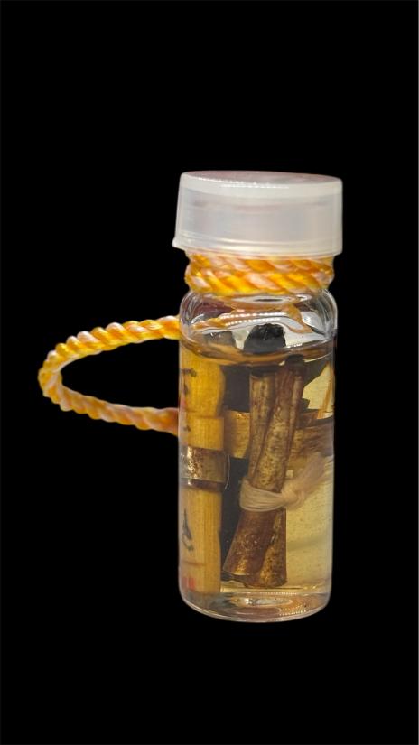 รัก ยม แช่น้ำมันอาถรรพ์ หลวงปู่หงษ์ท่านทำการเรียกจิตวิญญาณเด็กมาสถิตในหุ่นไม้แกะในขวดให้ดูแลรักษาคุ้มครอง ช่วยเหลือผู้เลี้ยงบูชา ให้โชคลาภ เมตตามหานิยม แก่ผู้เลี้ยงบูชา หรือทำตามคำขอของผู้เลี้ยงบูชา