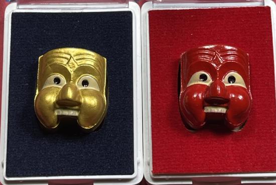หน้ากากพรานบุญ รุ่น ล่ำซำ99 พ่อท่านพรหมวัดพลานุภาพ จ.ปัตตานี ปี2558 เนื้อว่าน (หน้าแดง+หน้าทอง) พิมพ์ใหญ่
