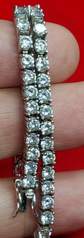 สร้อยข้อมือเพชรแถว ฝังเพชรRound-CZ เงิน 925 งานแบรน Made in Japan ยาวสร้อย: ประมาณ 18 ซม. นน.11.8 กรัม