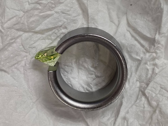 แหวนดีไซน์โดดเด่น อัญมณีสังเคราะห์ถูกจัดวางอย่างงดงาม ยื่นออกมาจากด้านข้างของตัวแหวน เมื่อสวมลงบนมือ อัญมณีจะอยู่ระหว่างนิ้วสองนิ้ว บิดแหวนไปรอบๆ อัญมณีก็จะโดดเด่นขึ้นมา แหวนวงนี้สามารถสวมใส่ได้หลายท่า ราวกับนักกายกรรมตัวจริง!