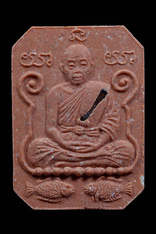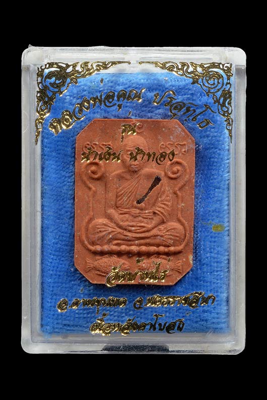 พระผงรูปเหมือนนั่งสมาธิ ( พิมพ์หลวงพ่อปาน ) รุ่น นำเงิน นำทอง ( เนื้อกระเบื้องหลังคาโบสถ์ ฝังตะกรุด ) พ.ศ.2536 ( กล่องเดิม )