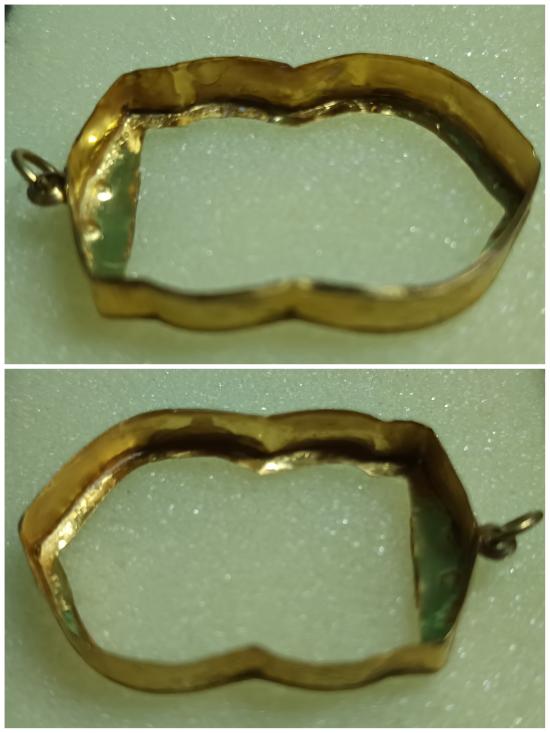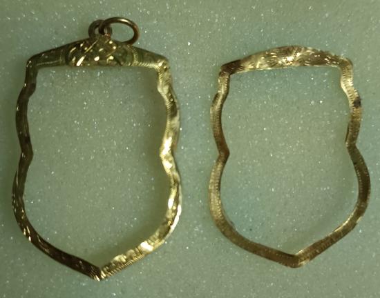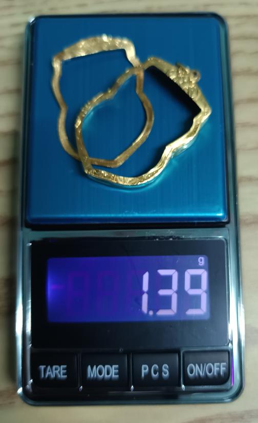 กรอบทองมือ2 ทรงเสมา น้ำหนักประมาณ 1.39 กรัม เปอร์เซ็นต์ทองประมาณ 65%