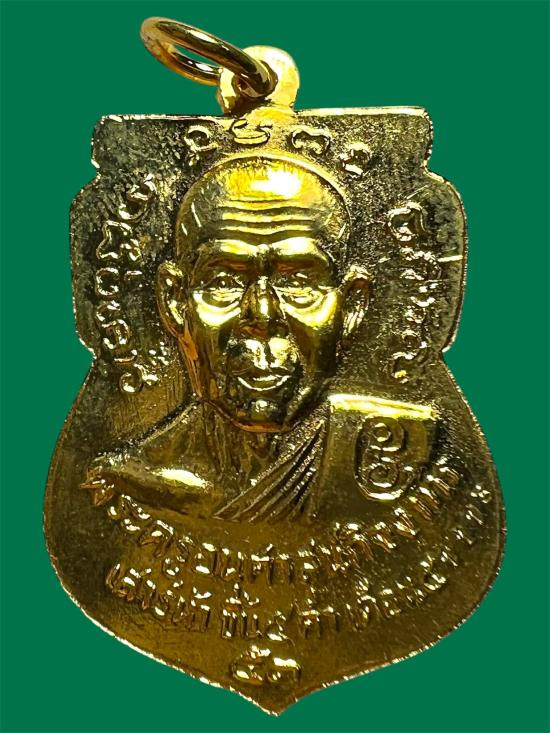 เหรียญเสมาหน้าเลื่อน หลวงพ่อทวด หลังพ่อท่านเขียว เสาร์ ๕ ทองแดงกะไหล่ทอง พ่อท่านเขียว วัดห้วยเงาะ ปี 2553 สวยงามมาก