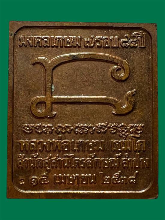 เหรียญแสตมป์หลวงพ่อเกษม รุ่นมงคลเกษม 7 รอบ ปี 2538 เนื้อทองแดง สุสานไตรลักษณ์ จ.ลำปาง