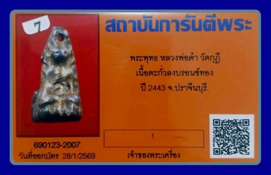 หล่อพระพุทธเนื้อตะกั่ว (ยุคต้น ตะกั่วดำเก่าถึงยุค) หลวงพ่อดำ วัดกุฎี ปี พศ. 2443++บัตรgpra