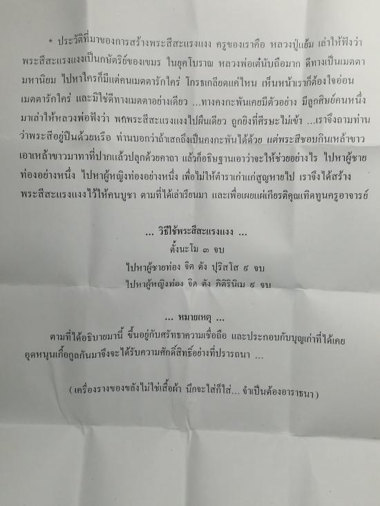พระสีสะแรงแงง รุ่น ๓ หลวงปู่แย้ม วัดสามง่าม นครปฐม ซีลเดิม พร้อมใบฝอย |
