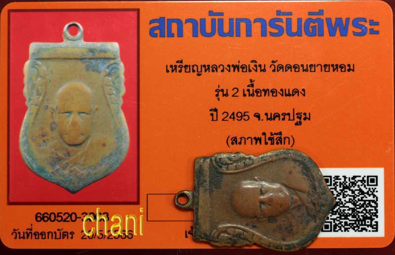 เหรียญ หลวงพ่อเงิน วัดดอนยายหอม รุ่น2 เนื้อทองแดง ปี2495 จ.นครปฐม สภาพเก่าน่ารักน่าใช้ พร้อมบัตรรับรองพระแท้จากจีพระ อุ่นใจได้ค่ะ