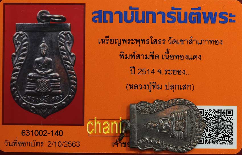 เหรียญ พระพุทธโสธร วัดเขาสำเภาทอง พิมพ์สามขีด นิยม เนื้อทองแดง ปี2514 จ.ระยอง สภาพสวยๆ มีผิวปรอทงามๆเดิมๆ หายากมากสภาพนี้ พร้อมบัตรรับรองจากจีพระอุ่นใจได้