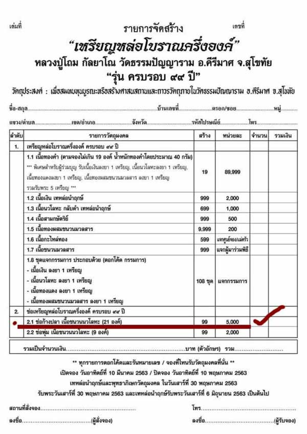 รายละเอียดการจัดสร้างในจำวนการจัดสร้าง 99 ช่อ
