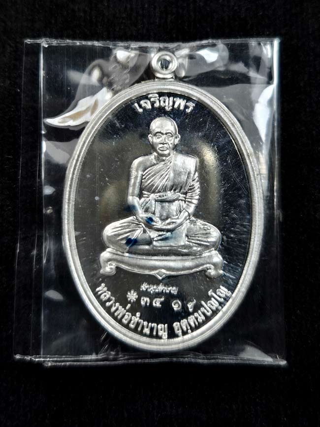 เหรียญ รุ่น เจริญพร หลังพระพรหม หลวงพ่อชำนาญ วัดชินวราราม จ. ปทุมธานี พ.ศ.2560 เนื้อเงิน ตอก 3 โค๊ต ตอกเลข กล่องเดิม บัตร รับรองการันตีพระ !!
