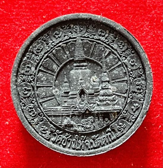 เหรียญกลม บูรณะเจดีย์ ปี51 เนื้อกระเบื้องหลังคาโบสถ์ พร้อมกล่อง