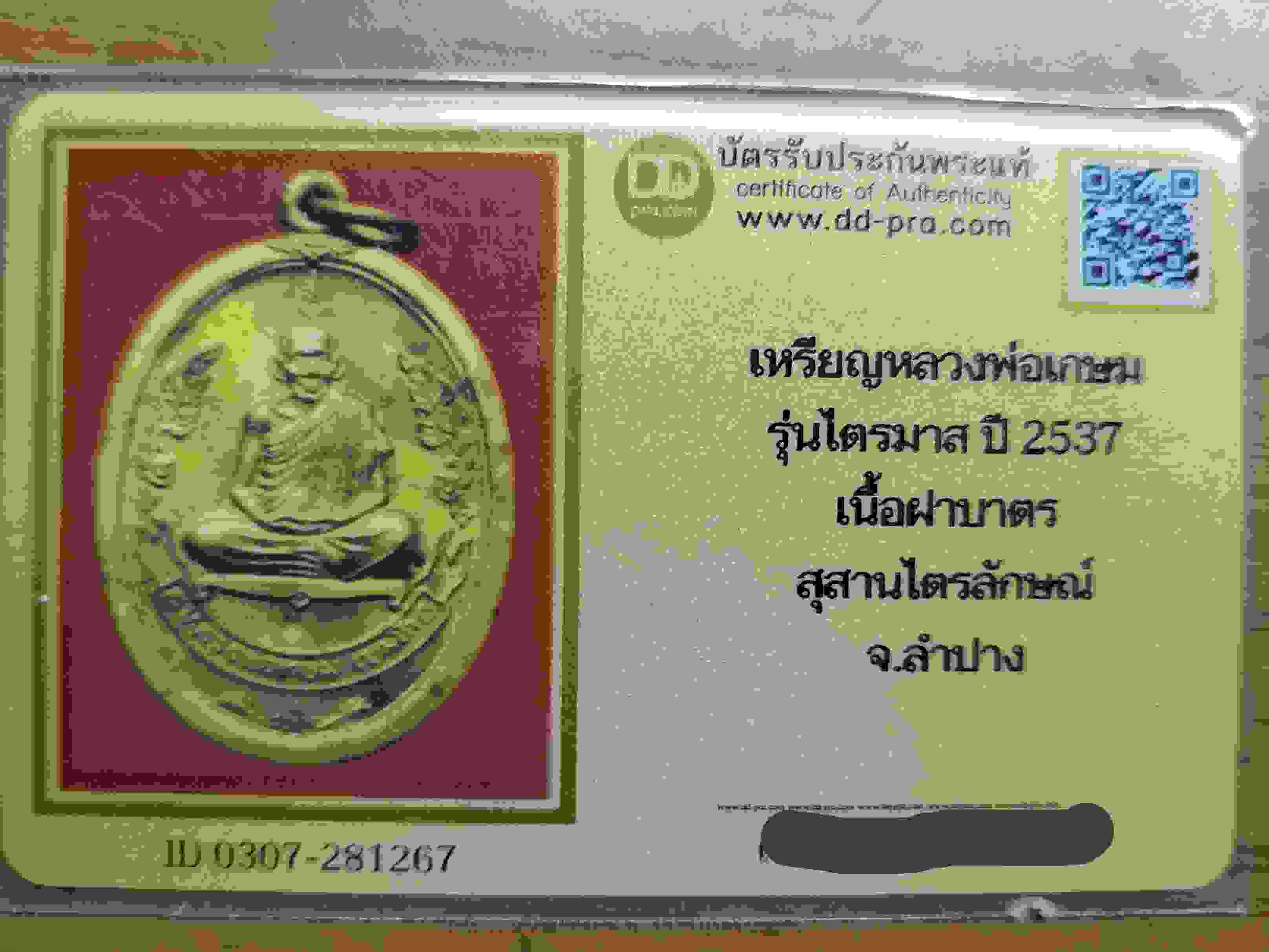 เคาะเดียว เหรียญกนกข้าง หลวงพ่อเกษม เขมโก รุ่นไตรมาส 37 สุสานไตรลักษณ์ เนื้อทองฝาบาตร ปี 2537 ตอกโค๊ต สภาพสวยเดิมๆ