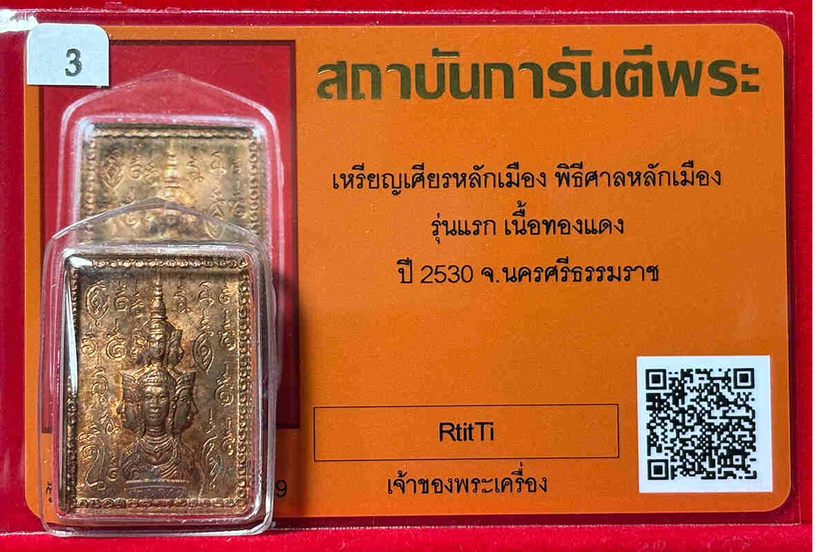 DeDee แบ่งเคาะแรก เหรียญแสตมป์ ยันต์ข้าง เศียรหลักเมือง รุ่นแรก ปี ๒๕๓๐ เนื้อทองแดง ผิวไฟเดิม DeDee