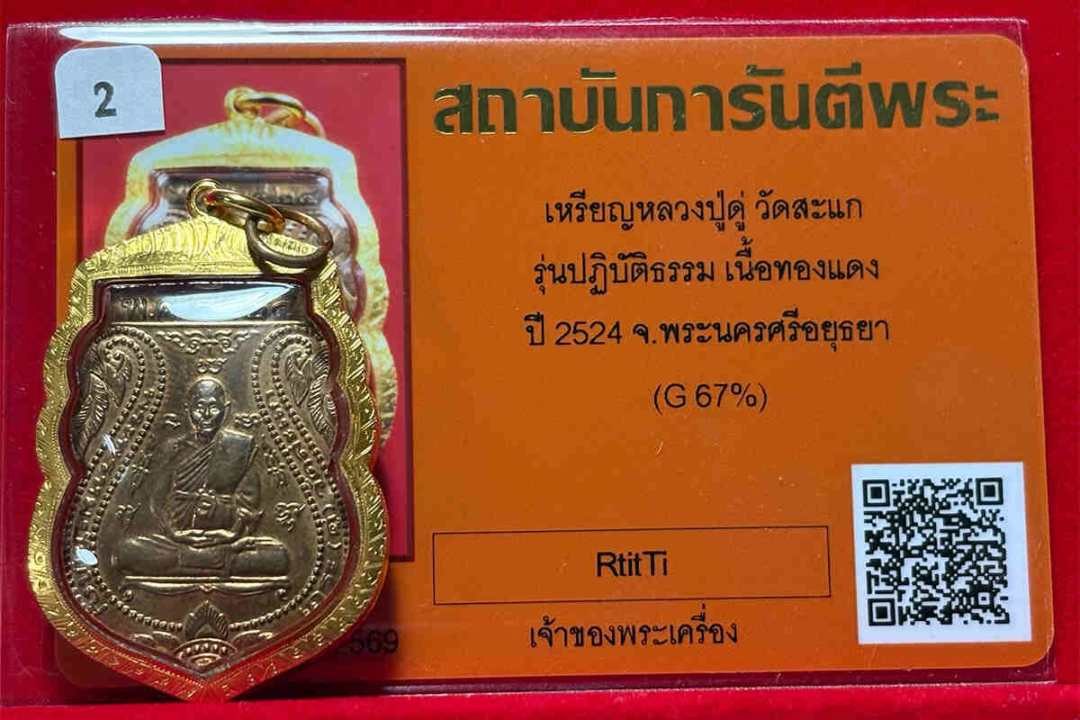 เหรียญปฏิบัติธรรม หลวงปู่ดู่ วัดสะแก ปี ๒๕๒๔