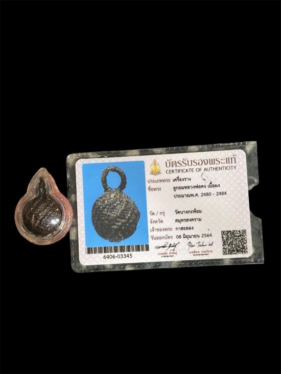 ลูกอมมหากัณฑ์หลวงพ่อคง วัดบางกะพ้อม สมุทรสงคราม เบญจภาคีลูกอมของเมืองไทย มาพร้อมบัตรรับรองสมาคมผู้นิยมพระเครื่องพระบูชาไทย เบญจภาคีลูกอมของเมืองไทย สุดยอดแห่งผงพุทธคุณ สุดยอดเครื่องรางที่สร้างชื่ออันลือลั่น ของหลวงพ่อคงแห่งลุ่มน้ำแม่กลอง สำหรับลูกอมหลวงพ่อคงลูกนี้สร้างจากเนื้อผงที่เขียนยันต์ลงบนกระดานชนวนแล้วลบเอาผง มาปั้นเป็นลูกอมบรรจุกระดาษสาจารอักขระเลขยันต์ไว้ด้านในลงรักถักเชือก ลูกอมมหากัณฑ์สภาพสวยงามมาตรฐาน ดูง่ายสวยพร้อมใช้ ลูกอมมหากัณฑ์ของท่านศักดิ์สิทธิ์ยิ่งนักคงกระพันชาตรีเป็นที่หนึ่ง ของแหลมและเขี้ยวงาไม่ได้กินเลือด แม้สุนัขกัดก็ไม่เข้า นอกจากนี้ยังเป็นมหานิยม สารพัดกัน เช่นกัน เสนียดจัญไร กันผีพราย กันอันตรายต่างๆ ลูกอมมหากัณฑ์ถูกจัดให้อยู่ในของเบญจภาคีลูกอมเมืองไทย เบญจภาคีลูกอมเมืองไทย 1.ลูกอมมหาจินดามณีพระปลัดปาน วัดตุ๊กตา 2.ลูกอมมหากัน หลวงพ่อคง วัดบางกระพ้อม 3.ลูกอมเกราะเพชร หลวงพ่อปาน วัดบางนมโค 4.ลูกอมเจ็ดพญาช้างสาร หลวงพ่อดิ่ง วัดบางวัว 5.ลูกอม หลวงพ่อพริ้ง วัดบางปะกอก