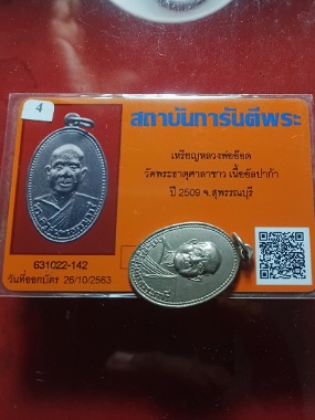 เหรียญหลวงพ่ออ๊อดวัดพระธาตุศาลาขาวปี09เนื้ออาปาก้ามีบัตรรับรองของจีพระ